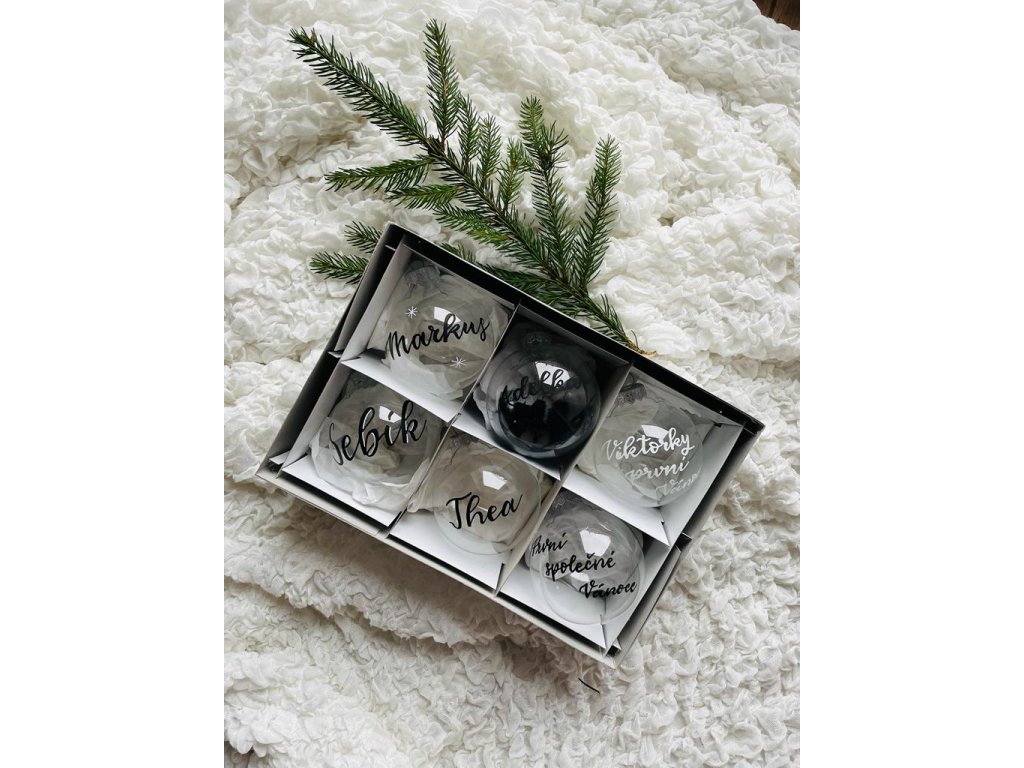 Personalizované baňky, do poznámky objednávky napište text + barvu textu: bílá, černá nebo kombinace. Průměr baňky je 8 cm.